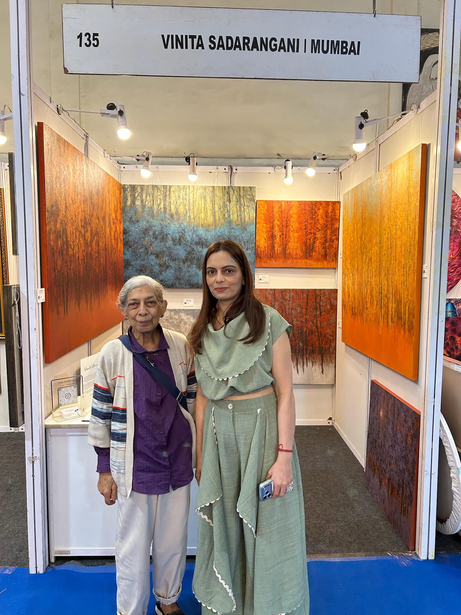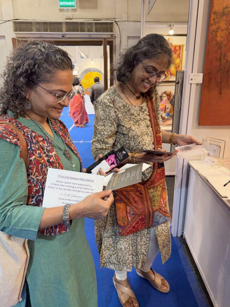 One of the most meaningful encounters was with a lady who, at my very first solo show years ago, had called me “Dr. Vinita,” saying my work felt healing and belonged in hospitals and clinics. Seeing her again after all this time reminded me that some artworks stay with people—and people find their way back to them.