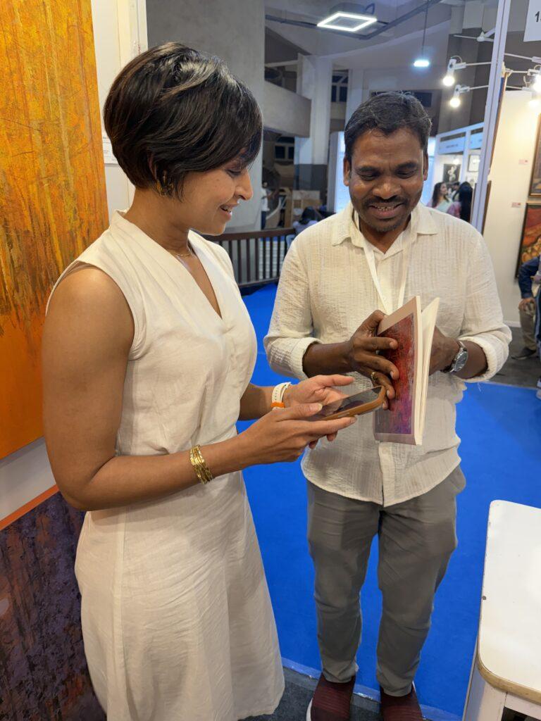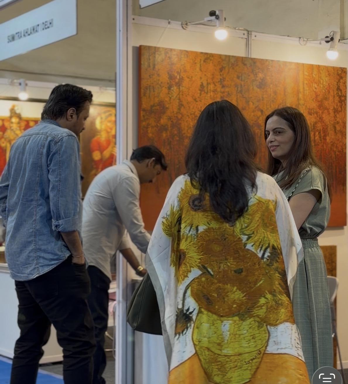 As a contemporary Indian artist working in an abstract impressionist style, I create paintings inspired by trees and nature, using a minimalist color palette. Fewer colors, more feeling. This booth wasn’t big, and it wasn’t planned far in advance. But sometimes you don’t wait for perfect conditions. You show up, and you let the work find its way.