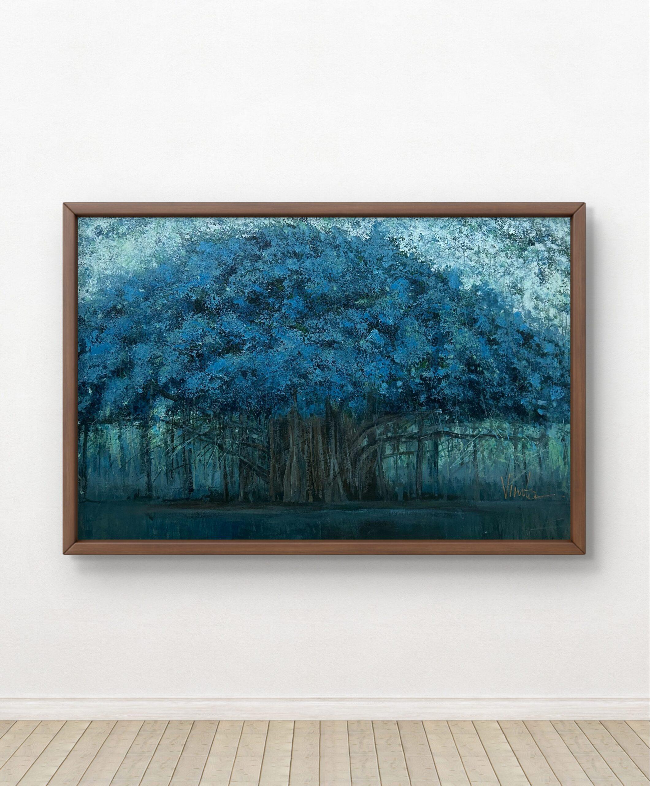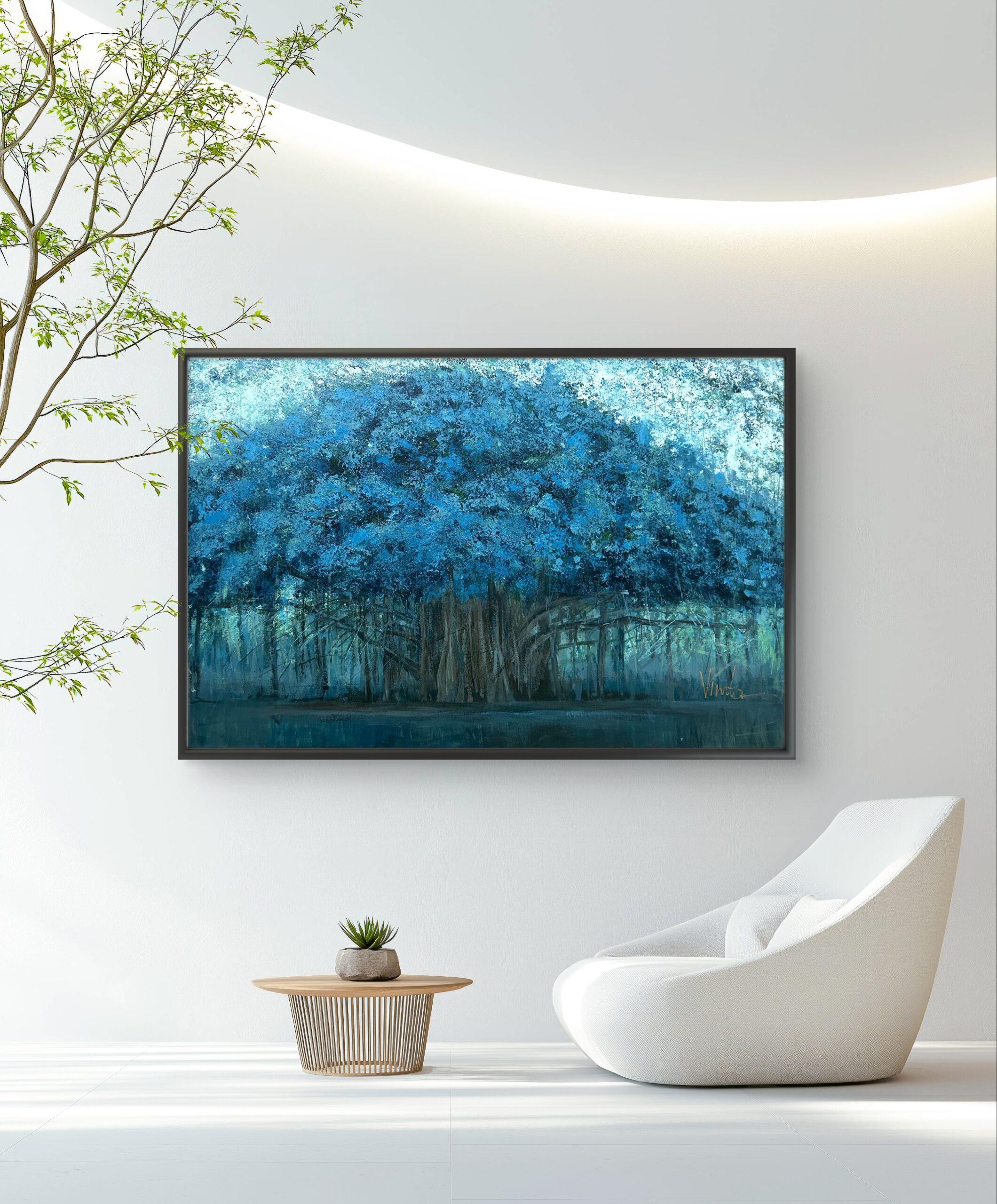 Blue especially this deep. soulful shade, has always captured my heart. It doesn’t demand attention. It quietly invites you to pause, breathe, and simply be. In this painting, the tree embodies that serene energy, subtle yet powerful. I hope that you can feel it too and its peaceful presence brings the same sense of healing and inspiration to your space as it does to mine.